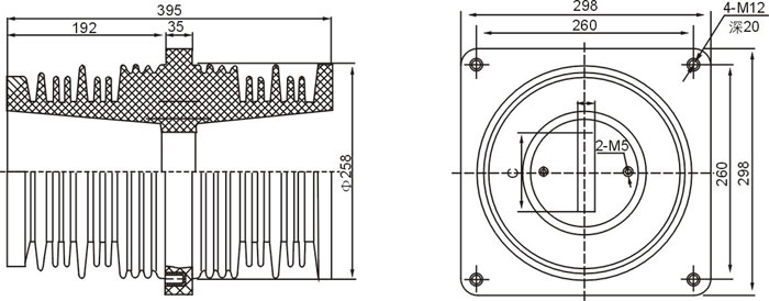 40.5KV穿墻套管為環(huán)氧樹脂APG工藝壓力凝膠成型結構,外形結構尺寸大小為128(100×100)mm、高225mm。主要適用于額定電壓為10KV及以下的成套設備中,作絕緣隔離和聯(lián)接過度之用。套管耐污及潮濕,無需特別維護,只需定期地清理表面污質。安裝時母排從孔內穿過。
