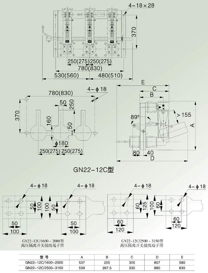 GN22-12(C)大電流產(chǎn)內(nèi)高壓隔離開(kāi)關(guān),適用于額定電壓10KV,三相交流50HZ,電力系統(tǒng)中高壓開(kāi)關(guān)設(shè)備作為有電壓無(wú)負(fù)載的情況下分合電路之用。開(kāi)關(guān)結(jié)構(gòu)設(shè)計(jì)新穎、合理、獨(dú)具一格。它采用了兩步動(dòng)作的鎖緊方式,使開(kāi)關(guān)動(dòng)熱穩(wěn)定性能優(yōu)異,操作力小。它采用了環(huán)氧樹(shù)脂和絕緣子及刷鍍銀等新材料新工藝,使開(kāi)關(guān)導(dǎo)電性能好,體積小,質(zhì)量輕。它的出線(xiàn)端子便于與真空斷路器、油斷路器連接,可縮小開(kāi)關(guān)柜體積,減少過(guò)渡接頭,降低成本。