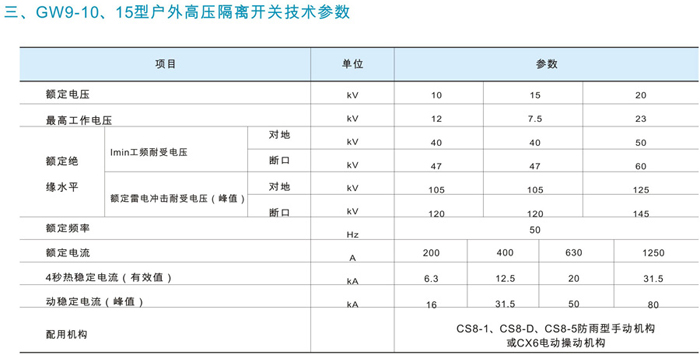 主要產(chǎn)品型號:GW9-10/200-6.3、GW9-10/400-12.5、GW9-10/630-20、GW9-10/1000-20、GW9-10/1250-31.5
