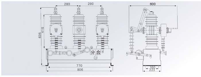 手動分閘裝置:當控制系統(tǒng)出現(xiàn)故障時,可用手動分閘作緊急分斷操作,可靠開斷額定負荷電流;